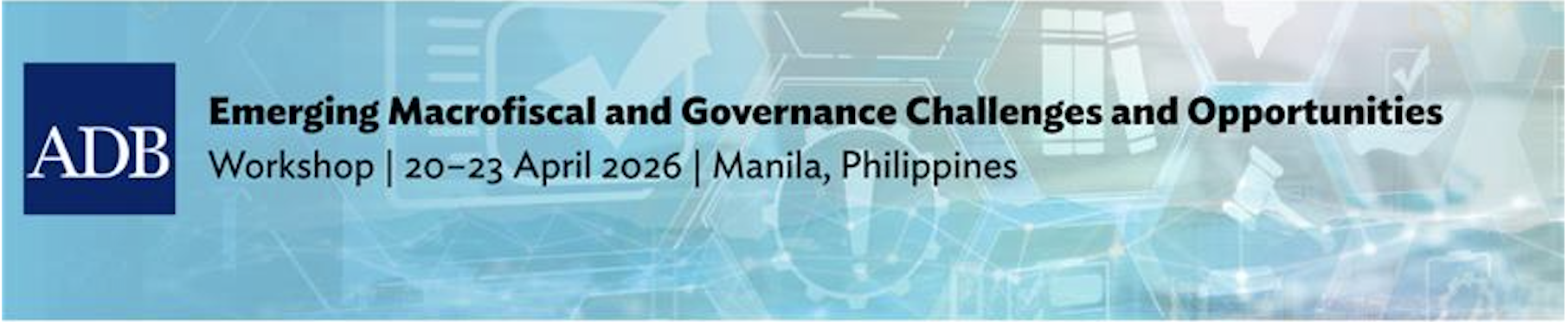 Series: ADB Data Room: Public Sector Management and Governance Emerging Macrofiscal and Governance Challenges and Opportunities in Southeast Asia 20 to 23 April 2026 Philippines The Workshop on Emerging Macrofiscal and Governance Challenges and Opportunities, organized by the Public Sector Management and Governance Sector Office (SD3-PSMG), will be held on 20–23 April at ADB Headquarters in Manila, Philippines. This builds on the success of the inaugural flagship workshop in 2025, and takes a regional approach: covering key challenges and opportunities in macrofiscal and governance management across ADB’s Southeast Asia (SE) developing member countries (DMCs). The objectives of the workshop are as follows: Document learned lessons, good practices, emerging themes, and continuing challenges evident in the macrofiscal and governance systems in the SE region; and Share knowledge among SE DMCs to better appreciate the ecosystem of good practices and challenges in the macrofiscal and governance space at the country level. This workshop will convene senior government officials, experts, and ADB staff on two overarching emerging themes in the region, namely, (i) climate and disaster resilience in the public finance management space and (ii) opportunities to increase civil society organization (CSO) engagement in upstream and downstream public sector management reforms. Disclaimer The views expressed on this website are those of the authors and do not necessarily reflect the views and policies of the Asian Development Bank (ADB) or its Board of Governors or the governments they represent. ADB does not guarantee the accuracy of the data included in this publication and accepts no responsibility for any consequence of their use. By making any designation of or reference to a particular territory or geographic area, or by using the term “country” in this document, ADB does not intend to make any judgments as to the legal or other status of any territory or area. Event Coordinator/s Jose Luis Syquia Lyka Lacia-Lopez Kina Pascua Related Full Agenda ADB Organizer/s Public Sector Management and Governance Sector Office Topics Civil Society Finance Industry and Trade Public Sector Management and Governance Public-Private Partnership