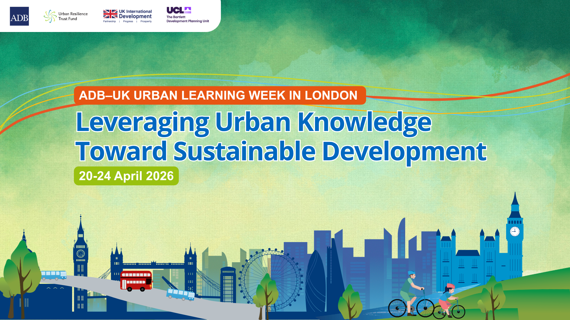 ADB–UK Urban Learning Week in London 2026: Leveraging Urban Knowledge Toward Sustainable Development 20 to 24 April 2026 United Kingdom The Asian Development Bank (ADB) and the Government of the United Kingdom (UK), through the Development Planning Unit (DPU) of University College London (UCL), will organize the ADB-UK Urban Learning Week (AUULW) in London. ADB works with rapidly urbanizing countries facing growing pressure to deliver infrastructure, housing, and services that are inclusive and resilient. Many ADB operations sit at the intersection of planning, infrastructure, finance, governance, and community engagement. The AUULW in London 2026 provides ADB project teams and developing member country (DMC) partners with exposure to mature urban systems in the UK, where complex trade-offs among growth, equity, sustainability, and private-sector participation are actively managed. Objectives AUULW in London 2026 will focus on the challenges urban practitioners face in contemporary cities, with a specific concern for sustainable and just development, and the delivery of resilient and inclusive infrastructure, housing, and public spaces. The course also examines opportunities and challenges for private-sector involvement in urban transformation—while emphasizing the need to cater to vulnerable sectors of the population and to achieve environmental sustainability. The UK context offers practical lessons on integrated planning, regulatory frameworks, institutional coordination, and implementation pathways that are highly relevant to strengthening upstream project design, policy dialogue, and delivery of ADB-supported urban investments. The event is supported by the Urban Resilience Trust Fund (URTF), financed by the Government of the United Kingdom, through the Foreign, Commonwealth and Development Office (FCDO). URTF supports cities in Asia and the Pacific in strengthening resilience through improved planning, infrastructure, knowledge exchange, and institutional capacity. Program and Learning Materials Disclaimer The views expressed on this website are those of the authors and do not necessarily reflect the views and policies of the Asian Development Bank (ADB) or its Board of Governors or the governments they represent. ADB does not guarantee the accuracy of the data included in this publication and accepts no responsibility for any consequence of their use. By making any designation of or reference to a particular territory or geographic area, or by using the term “country” in this document, ADB does not intend to make any judgments as to the legal or other status of any territory or area. Event Coordinator/s Kristina Katich Gail Warrander Carlo Luigi Asis ADB Organizer/s Water and Urban Development Sector Office Read Also ADB Event Page Urban Resilience Trust Fund Urban Development in Asia and the Pacific LinkedIn Partner Organization/s Urban Resilience Trust Fund The Bartlett Development Planning Unit, University College London (UCL) UK Foreign, Commonwealth and Development Office (FCDO) Topics Urban Development