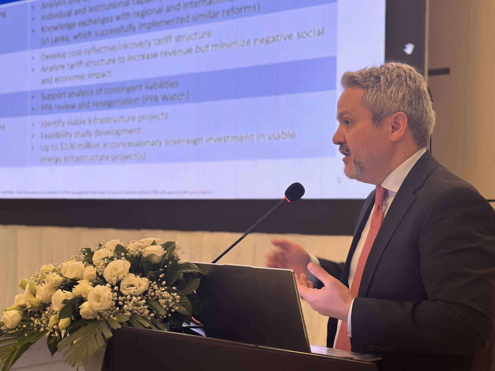 Series: ADB Data Room: Emerging Areas Sustainable Solutions Initiatives Inception Workshop on Power Sector Reform in the Lao PDR 28 November 2025 ADB hosted an Inception Workshop on Power Sector Reform under the technical assistance on Power Sector Enhancement for Fiscal Sustainability in Vientiane, Lao PDR. Approximately 40 representatives from the Ministry of Finance, the Ministry of Industry and Commerce, Électricité Du Laos and its subsidiaries, along with development partners, discussed ADB’s support for advancing power sector reform in the Lao PDR. The workshop examined key challenges, shared international reform experiences, and underscored the need for a coordinated approach among government agencies and development partners to effectively mobilize technical assistance and ensure the successful implementation of the Lao PDR’s reform agenda. Program and Learning Materials Disclaimer The views expressed on this website are those of the authors and do not necessarily reflect the views and policies of the Asian Development Bank (ADB) or its Board of Governors or the governments they represent. ADB does not guarantee the accuracy of the data included in this publication and accepts no responsibility for any consequence of their use. By making any designation of or reference to a particular territory or geographic area, or by using the term “country” in this document, ADB does not intend to make any judgments as to the legal or other status of any territory or area. Event Coordinator/s Rafayil Abbasov ADB Organizer/s Energy Sector Office Read Also ADB Data Room: Emerging Areas Sustainable Solutions Initiatives Topics Energy Urban Development