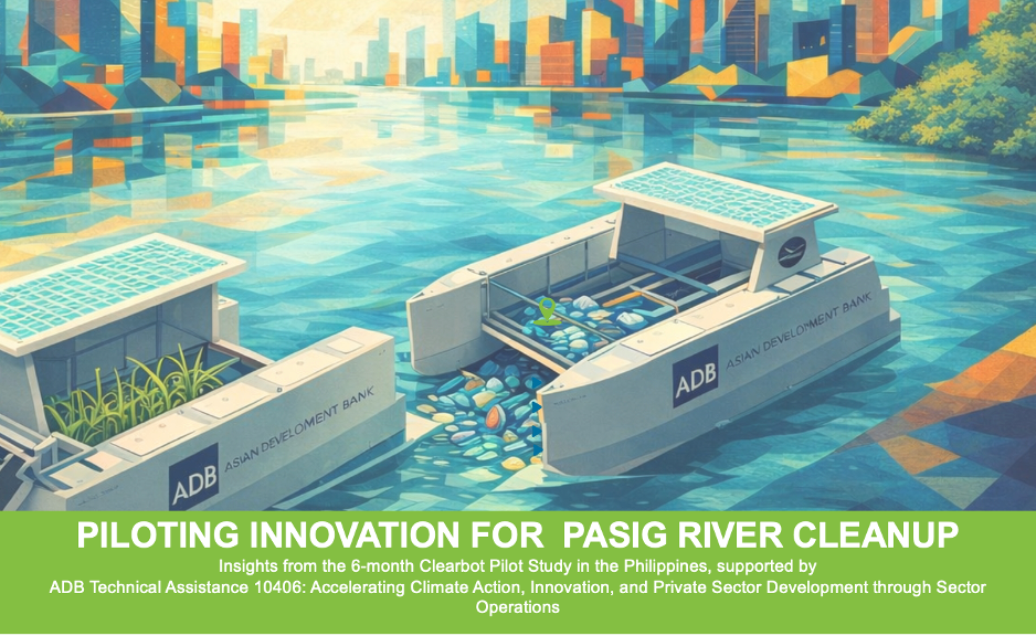 Piloting Innovation for Pasig River Cleanup: Insights from the 6-month Clearbot Pilot Study in the Philippines 28 January 2026 On 28 January 2026, ADB convened government agencies, local governments, development partners, and the private sector at ADB Headquarters to share insights from the 6-month ClearBot pilot—an AI-enabled river cleanup initiative deployed in San Juan City and Pasig City. Implemented with the Metropolitan Manila Development Authority, Pasig City, San Juan City, and other stakeholders, the pilot tested how autonomous, electric vessels can complement traditional cleanup efforts while generating real-time data to guide planning, enforcement, and flood-risk management. The event highlighted lessons on integrating innovation into existing river management and urban development systems, the importance of piloting before scaling, and the need for strong institutional coordination, sustainable financing, and community engagement. Discussions emphasized that technology is not a silver bullet, but a powerful enabler when embedded within broader solid waste management, circular-economy, and urban resilience strategies. The ClearBot pilot was supported under ADB’s technical assistance on accelerating climate action, innovation, and private sector development through sector operations, contributing to the Philippines’ broader efforts to rejuvenate the Pasig River, strengthen disaster resilience, and advance sustainable urban development. Program and Learning Materials 28 January 2026 Session / Activity Title Speaker(s) Remarks Welcome Remarks from ADB Philippines Country Director The document discusses the conclusion of a six-month pilot study using Clearbot technology for the cleanup of the Pasig River in the Philippines,… Andrew Jeffries Remarks Key Message from Philippine Department of Environment and Natural Resources The document discusses the collaboration between the Department of Environment and Natural Resources (DENR) and the Asian Development Bank (ADB) on a… Al Orolfo Remarks Briefer and Talking Points from the Office of the Presidential Adviser on Pasig River Rehabilitation The document discusses the collaborative efforts and initiatives for the rehabilitation of the Pasig River in the Philippines, highlighting the… John Karl Vicenta Presentation Clearbot Pilot This presentation outlines a pilot study on the use of autonomous robotic technology for the cleanup and restoration of waterways in Metro Manila,… Samyuktha Sriram Presentation Clearbot Video Showcase Fireside ChatSummary of Open Forum and Question and Answer Moderated by: Christine Po King Chan PanelistsSamyuktha Sriram, Head of Business Development and Marketing, Clear Robotics Gabriel Gerard Katigbak, CENRO Head, San Juan City Government Kenneth Stern, Project Director, Contemporary, Ayala Foundation, Inc. Lydia H. Fadol, Public Services Officer IV, City Government of Makati Joanna Mae D. Norcio-Ricafort, PSO IV / Acting Chief, Environmental Management and Protection Division Mark Navarro, Director, Metropolitan Manila Development Authority Kiko Rustia, Councilor, Pasig City Government Al Oga Orolfo, Director, Department of Environment and Natural Resources Disclaimer The views expressed on this website are those of the authors and do not necessarily reflect the views and policies of the Asian Development Bank (ADB) or its Board of Governors or the governments they represent. ADB does not guarantee the accuracy of the data included in this publication and accepts no responsibility for any consequence of their use. By making any designation of or reference to a particular territory or geographic area, or by using the term “country” in this document, ADB does not intend to make any judgments as to the legal or other status of any territory or area. Event Coordinator/s Water Sector Group Related Full Agenda Summary of Open Forum and Question and Answer ADB Organizer/s Water and Urban Development Sector Office Read Also Accelerating Climate Action, Innovation, and Private Sector Development Through Sector Operations: Video: Can innovation and AI help bring life back to the Pasig River — and to our cities? Pasig River Plastics Waste Digital Twin Prototype Photo Gallery Partner Organization/s Department of Environment and Natural Resources Office of the Presidential Adviser on Pasig River Rehabilitation Department of Human Settlements and Urban Development Metropolitan Manila Development Authority Department of Interior and Local Government Philippine Coast Guard City Government of Manila City Government of Pasig City Government of Makati City Government of San Juan Clear Robotics Ayala Foundation Topics Climate Change Disaster Risk Management Environment Urban Development Water