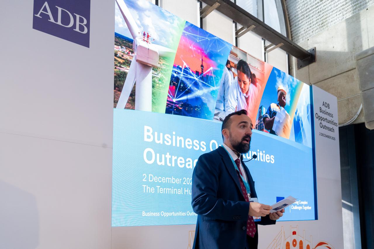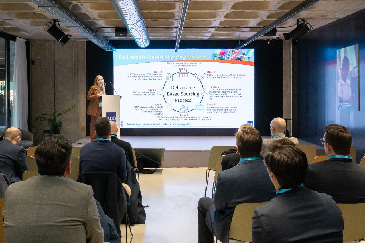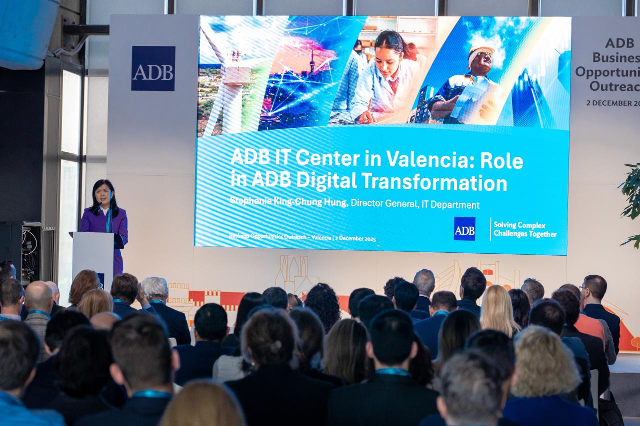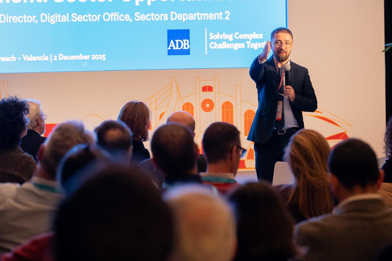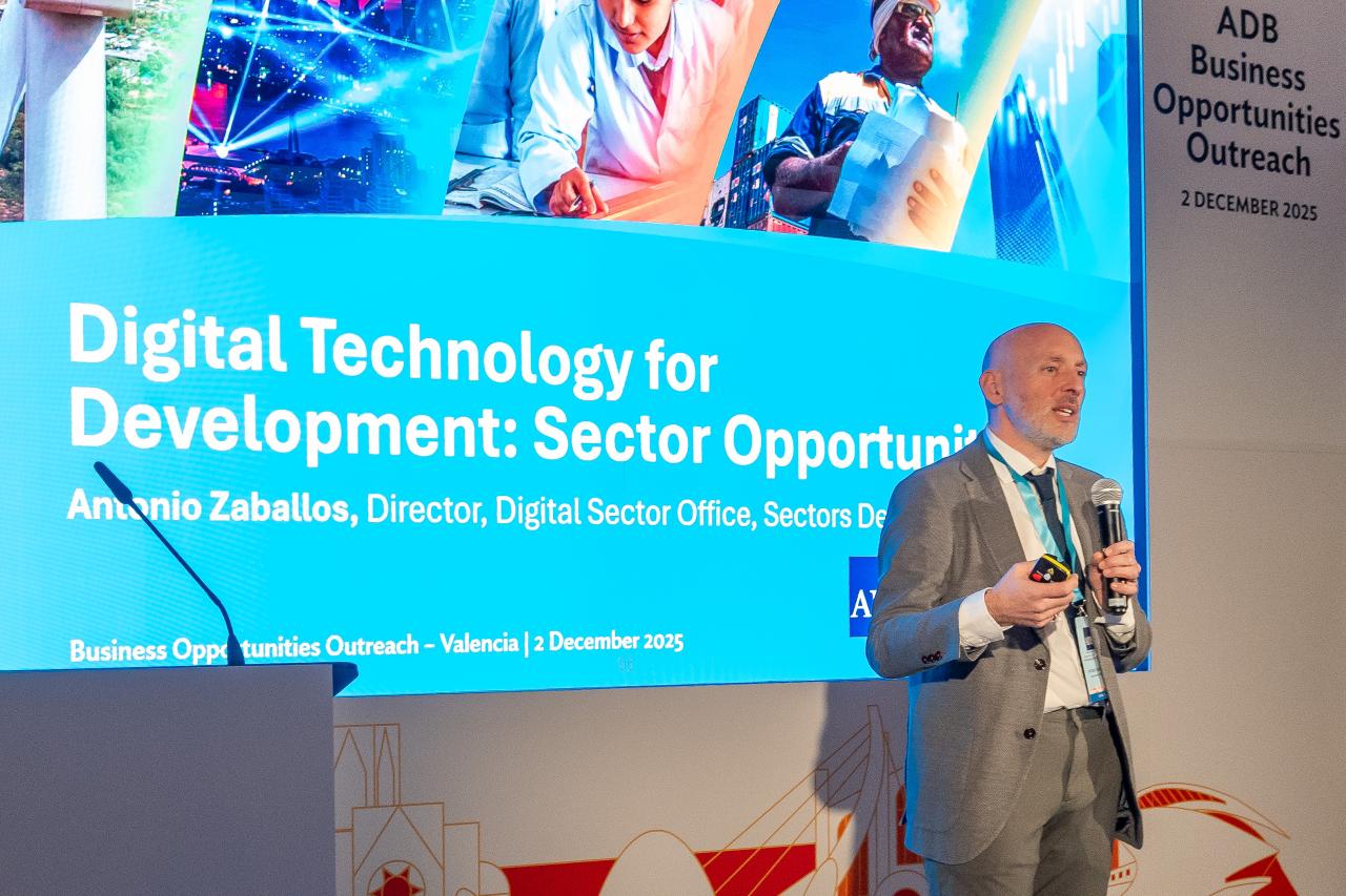 Event: ADB Business Opportunities Seminar in Valencia, Spain Photo Gallery: ADB Business Opportunities Seminar in Valencia, Spain 02 December 2025 Photos from the ADB Business Opportunities Seminar in Valencia, Spain Disclaimer The views expressed on this website are those of the authors and do not necessarily reflect the views and policies of the Asian Development Bank (ADB) or its Board of Governors or the governments they represent. ADB does not guarantee the accuracy of the data included in this publication and accepts no responsibility for any consequence of their use. By making any designation of or reference to a particular territory or geographic area, or by using the term “country” in this document, ADB does not intend to make any judgments as to the legal or other status of any territory or area. Topics ADB Administration and Governance ICT Industry and Trade Private Sector Public-Private Partnership