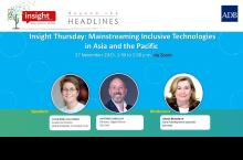Event: Insight Thursday: Mainstreaming Inclusive Technologies in Asia and the Pacific Insight Thursday: Mainstreaming Inclusive Technologies in Asia and the Pacific Promotional Material Disclaimer The views expressed on this website are those of the authors and do not necessarily reflect the views and policies of the Asian Development Bank (ADB) or its Board of Governors or the governments they represent. ADB does not guarantee the accuracy of the data included in this publication and accepts no responsibility for any consequence of their use. By making any designation of or reference to a particular territory or geographic area, or by using the term “country” in this document, ADB does not intend to make any judgments as to the legal or other status of any territory or area. Topics Social Development and Protection